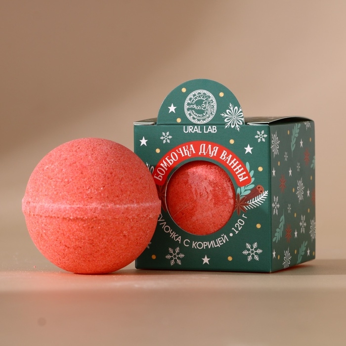 Бомбочка для ванны URAL LAB, 120 г, аромат булочки с корицей, Новый Год