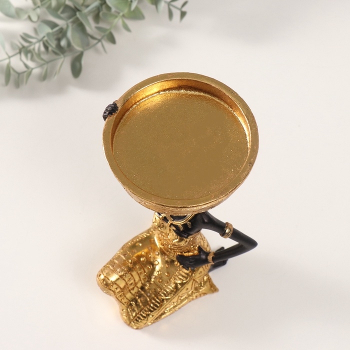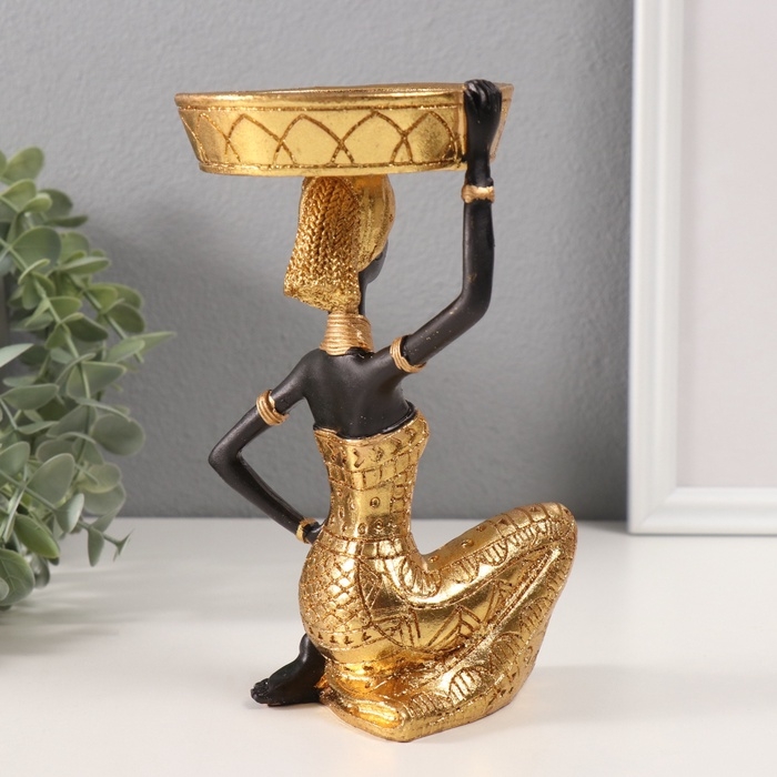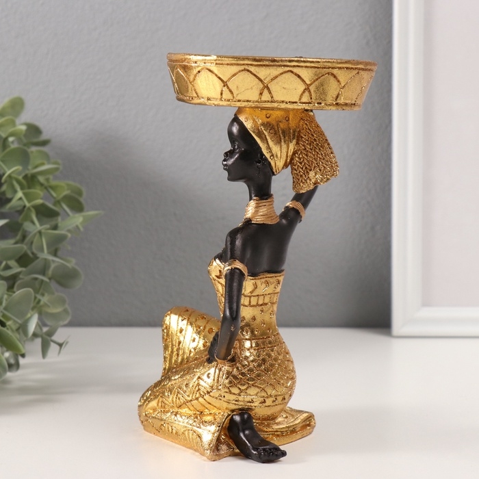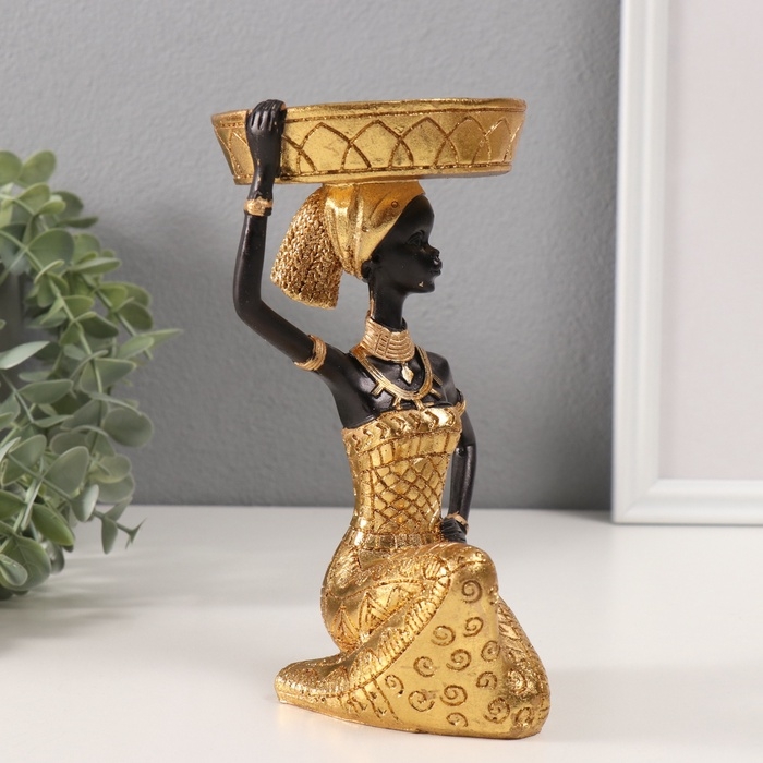 Сувенир полистоун подсвечник "Африканка Рудо с большим тазиком на голове" d=8 см 9,5х9,5х18 см 106