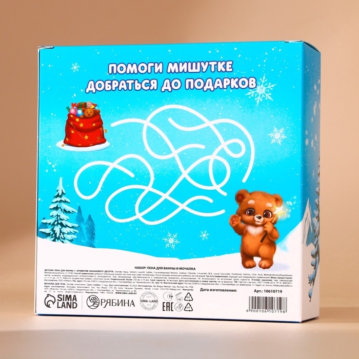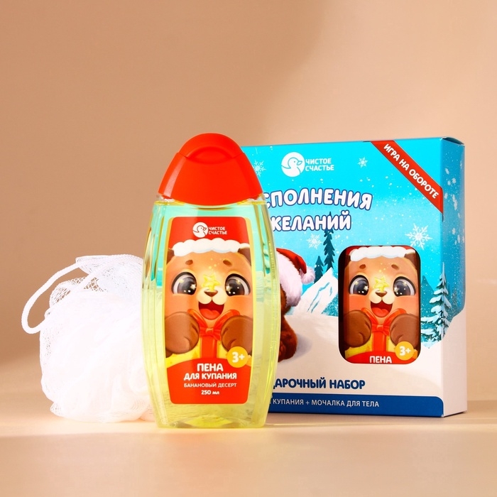 Подарочный набор детский ЧИСТОЕ СЧАСТЬЕ «Исполнения желаний»: пена для ванны 250 мл и мочалка для тела, Новый Год