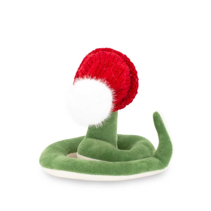 - На змейке яркая красная шапочка, которая защитит от самого знойного холода.