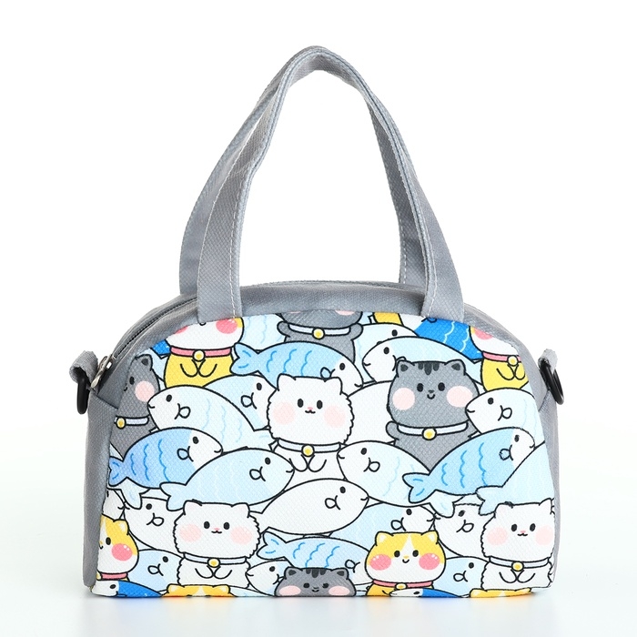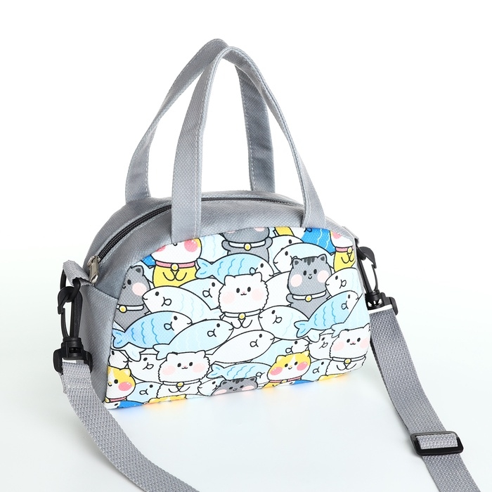 Сумка детская для девочки на молнии, регулируемый ремень, цвет серый