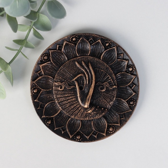 Подставка под благовония полистоун "Рука - Чин мудра" бронза 9,8x9,8x1 см