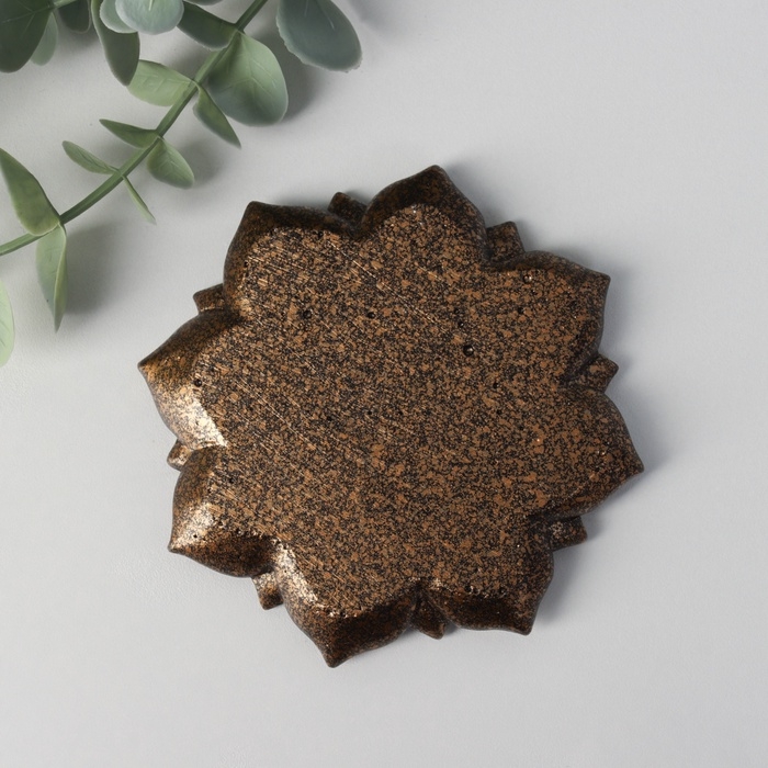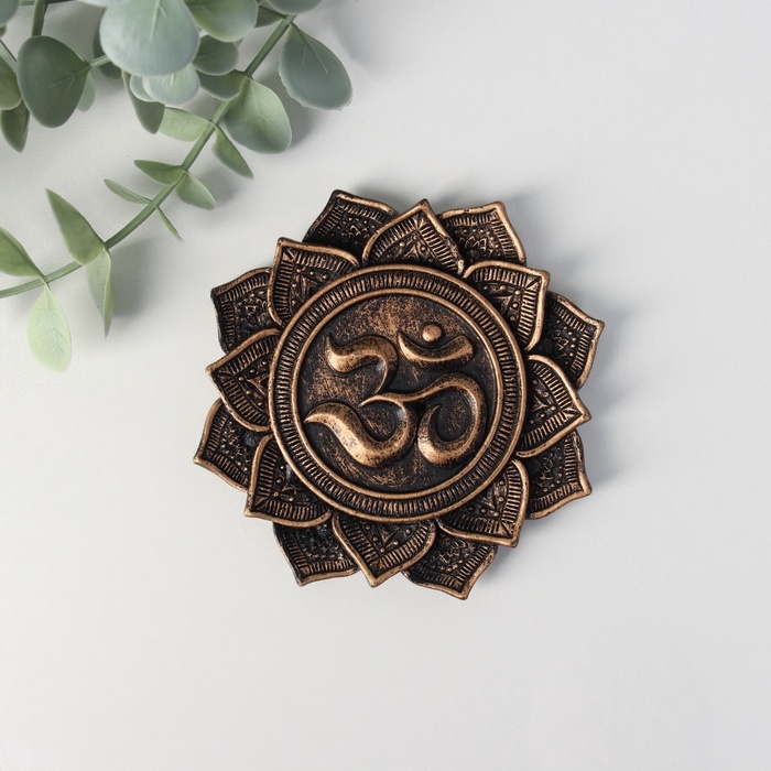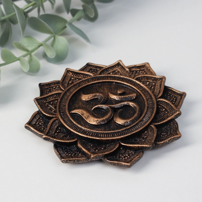 Подставка под благовония полистоун "Цветок с Ом (мантра)" золото 10,5x10,5x1 см