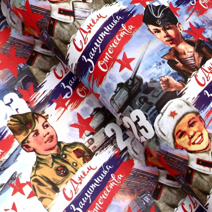 Бумага упаковочная, "С Днём Защитника Отечества", односторонняя 100 см х 70 см