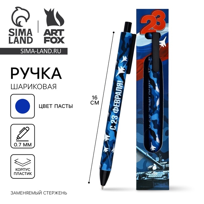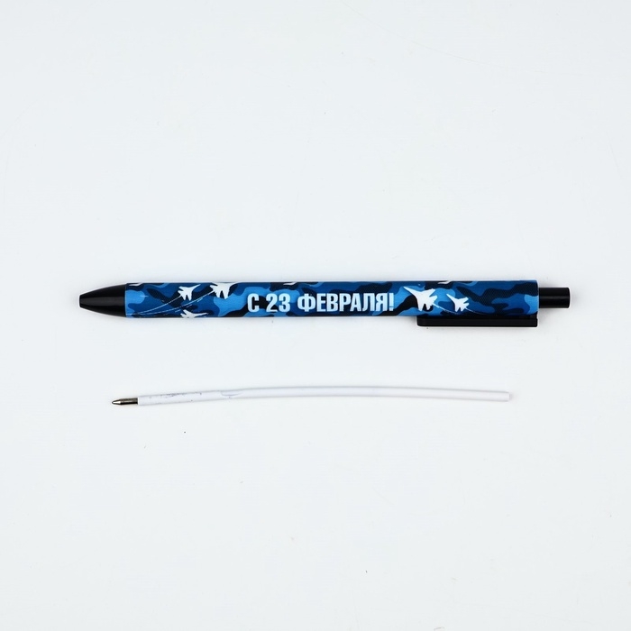 Ручка шариковая, синяя паста, 0.7 мм, автоматическая, в конверте «23 февраля»
