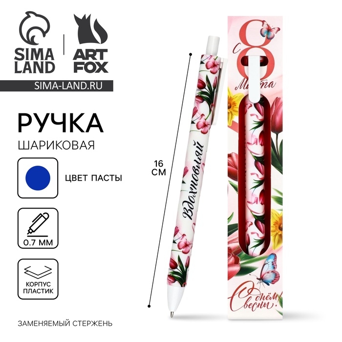 Ручка шариковая, синяя паста, 0.7 мм, автоматическая, матовая «8 МАРТА»