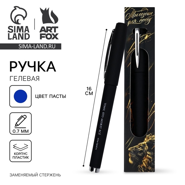 Ручка гелевая, синяя паста, 0.5 мм, пластик «Ты создан для побед»