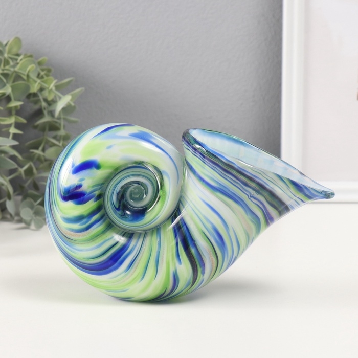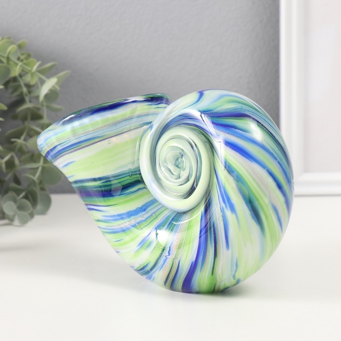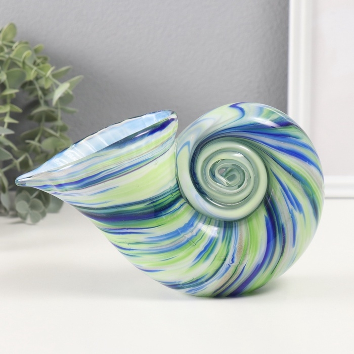 Сувенир стекло "Морская полосатая ракушка" зелёно-голубая 9х20х12 см