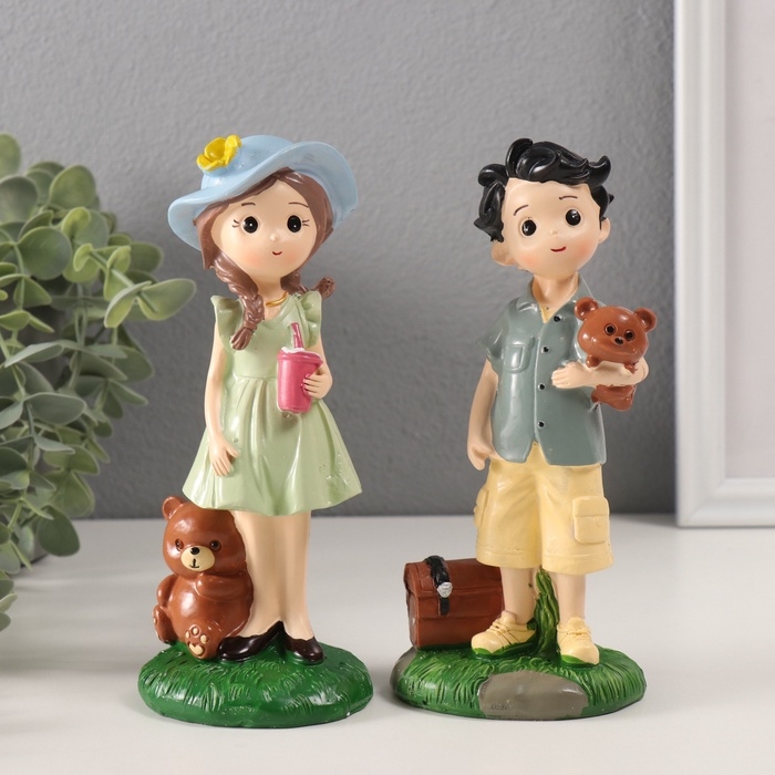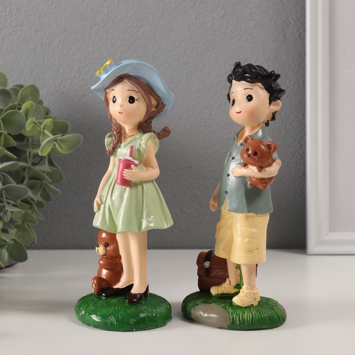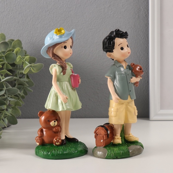 Сувенир полистоун "Мальчик и девочка с мишками" набор 2 шт 6х7,5х17 см