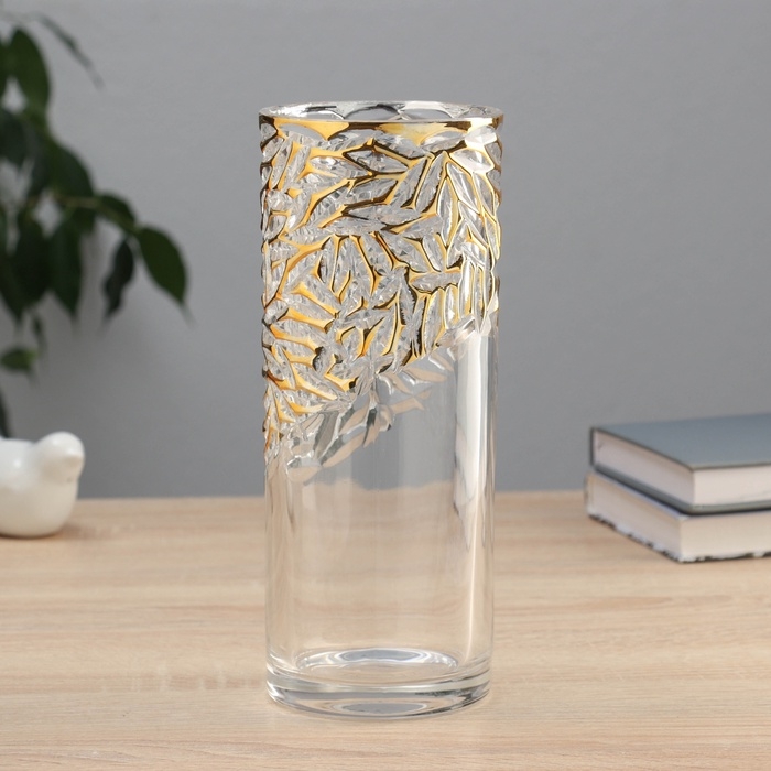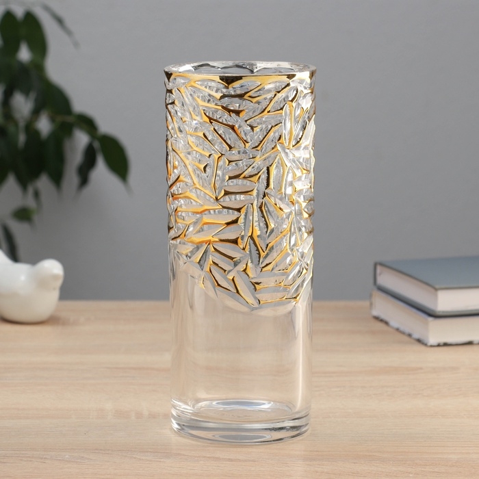 Ваза стекло настольная "Милагрос" узоры верх, 24х9 см, прозрачный