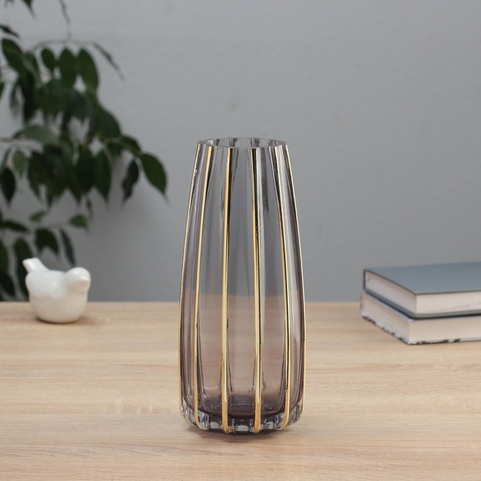 Ваза стекло настольная "Милагрос" классика полосы вертикаль, d-6см, h-21х9 см, серый