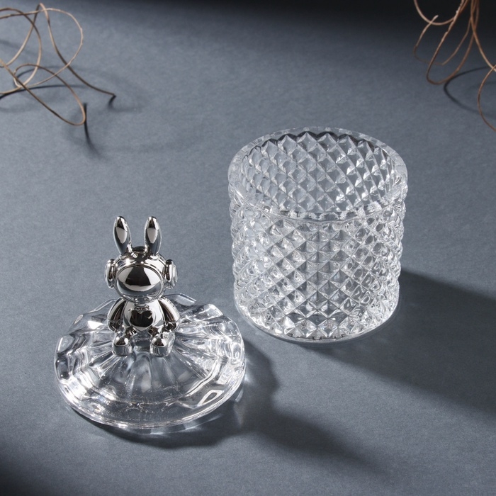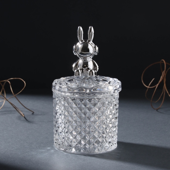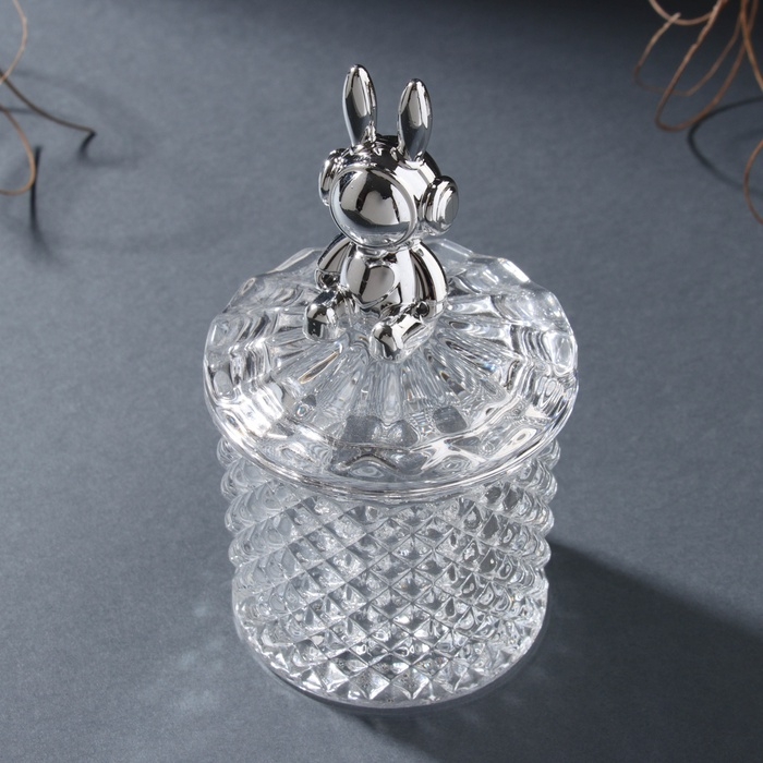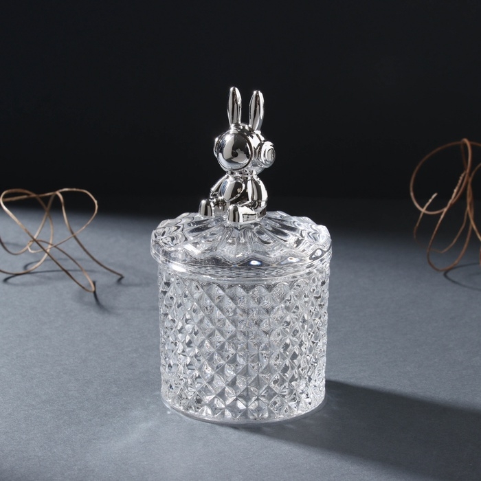 Шкатулка стекло "Заяц в наушниках. Ромбы" серебро 6х6х12 см