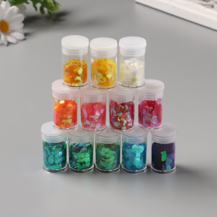 Декор для творчества в банке "Неоновые сердца" набор 12 шт 13,4х8,8х3 см