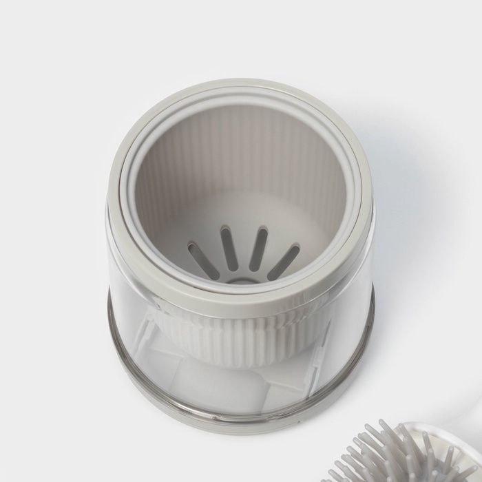 Изготовленный из высококачественного силикона, ёршик отличается гибкостью и долговечностью. Его компактные размеры (10.5×10.5×41 см) позволяют удобно разместить его в любом уголке, а специальная емкость для моющего средства обеспечивает легкий доступ к чистящему составу в любое время.