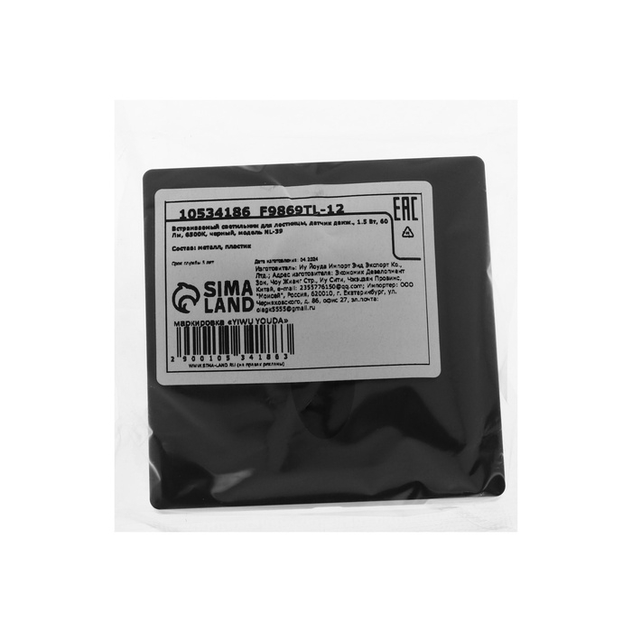 Встраиваемый светильник для лестницы, NL-39, датчик движ., 1.5 Вт, 60 Лм, 6500К, черный