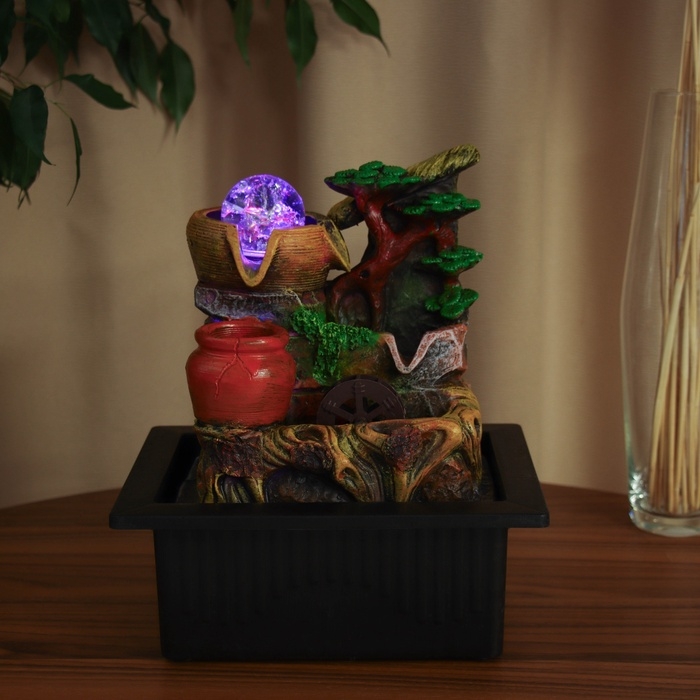 Фонтан "Бочки под высоким деревом" 28х23 см (с подсветкой)