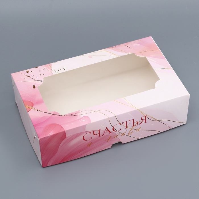 Коробка складная с окном под зефир "8 марта, розы", 25 х 15 х 7 см