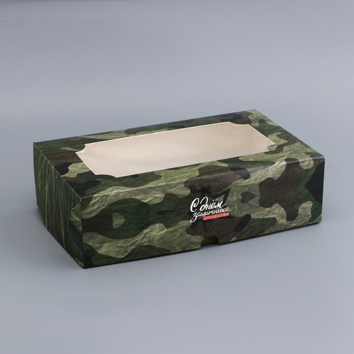 Коробка подарочная складная с окном, упаковка, "С Днем защитника Отечества", 25 х 15 х 7 см