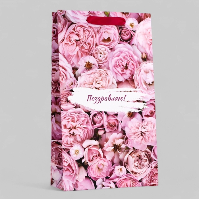 Пакет подарочный ламинированный вертикальный, упаковка, «Поздравляю!», 18 х 23 х 8 см
