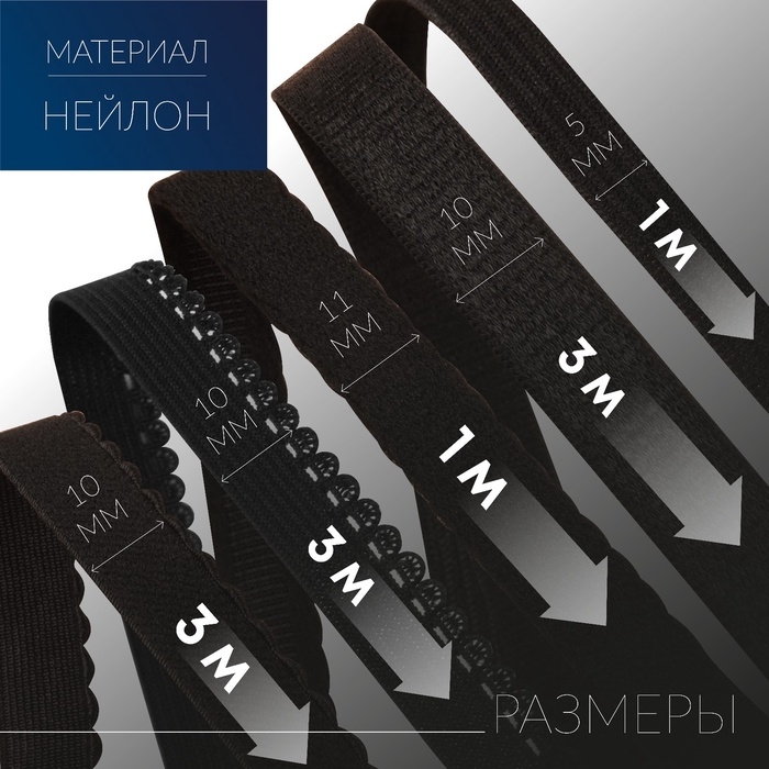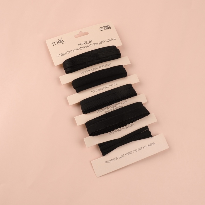 Набор резинок для пошива нижнего белья, 5 видов, цвет чёрный