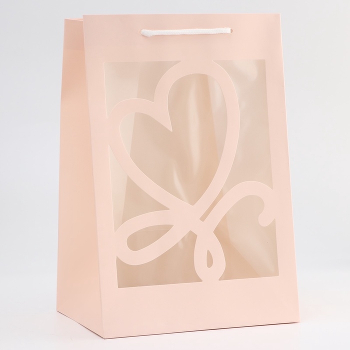 Этот нежный крафтовый бумажный пакет с фигурным окном в форме сердца создан для тех, кто ценит уют и романтику.