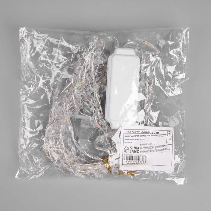 Гирлянда «Нить» 3 м с насадками «Шарики», IP20, прозрачная нить, 20 LED, батарейки AAх3 (нет в комплекте), свечение мульти