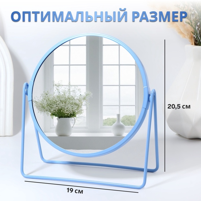 Зеркало настольное «COLOURS», d зеркальной поверхности 16 см, цвет голубой