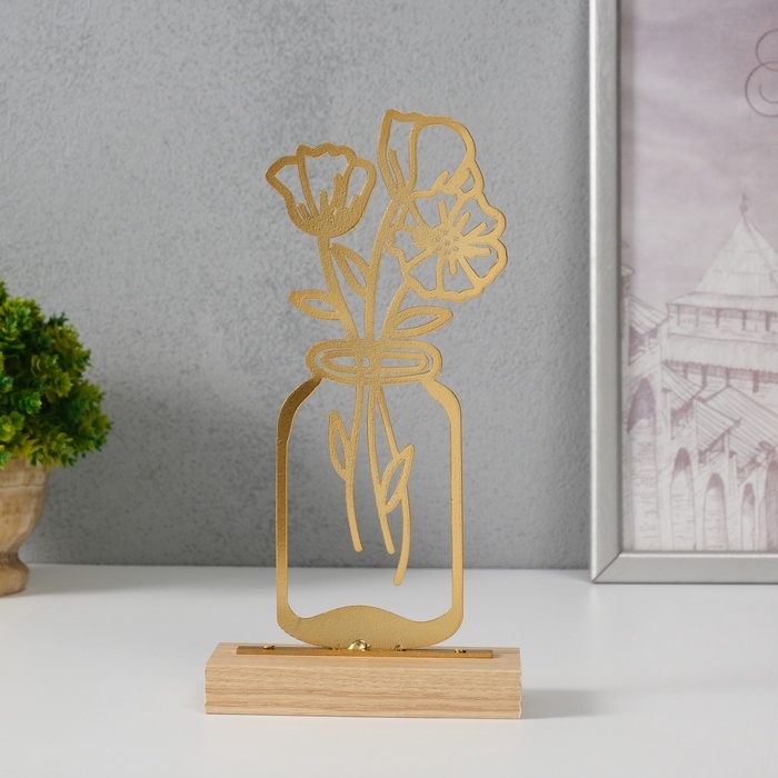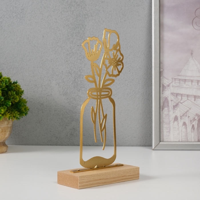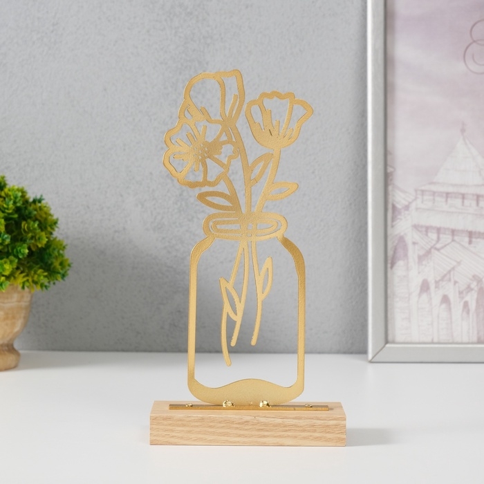 Сувенир металл "Лютики в банке" золото 5х11,5х22 см
