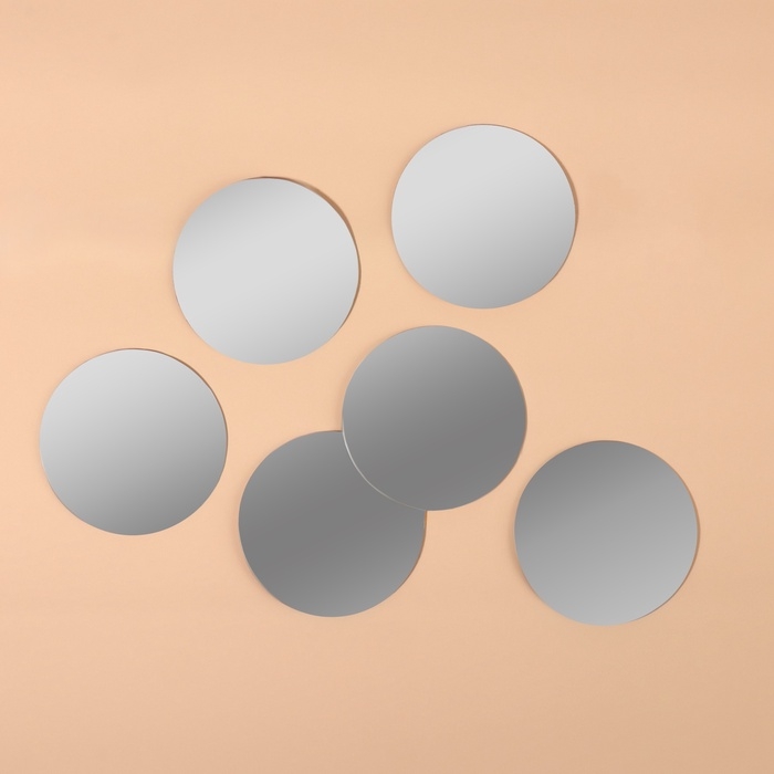 Интерьерные зеркала для декорирования, без рамы, набор - 6 шт, d = 6 см