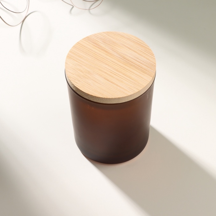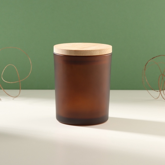Банка для свечей стекло с крышкой "Коричневая полуматовая" 220 мл 7х7х8,4 см