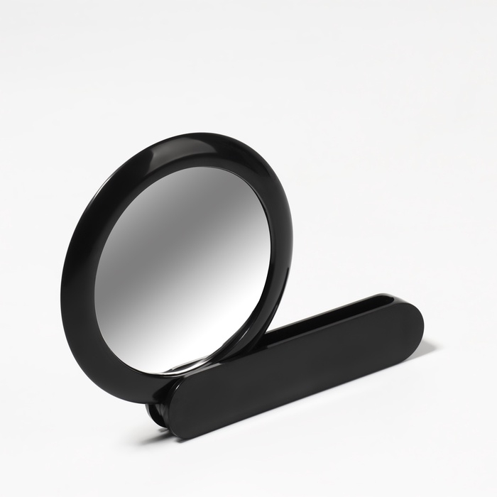 Зеркало с ручкой, складное, двустороннее, с увеличением, d зеркальной поверхности 6,4 см, цвет чёрный
