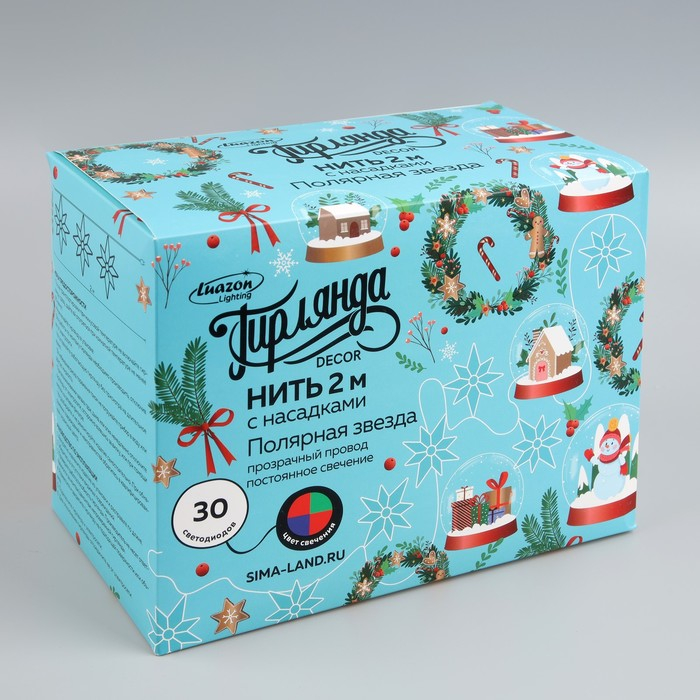 Гирлянда «Нить» 2 м с насадками «Полярная звезда», IP20, прозрачная нить, 30 LED, свечение мульти (RG/RB), мигание, 220 В
