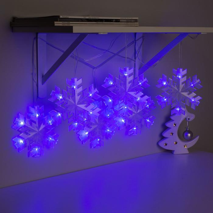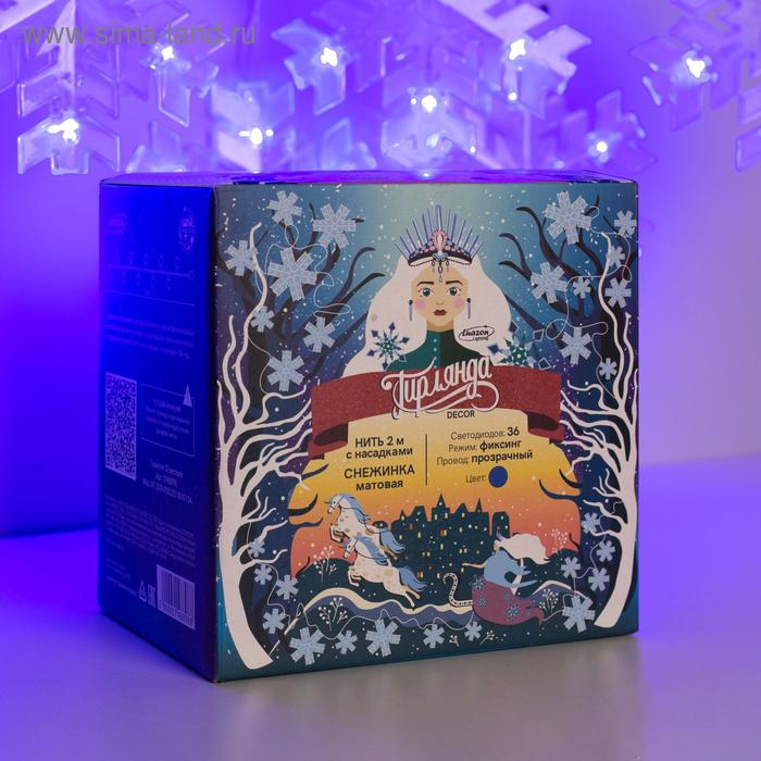 Гирлянда «Нить» 2 м с насадками «Снежинка матовая», IP20, прозрачная нить, 36 LED, свечение синее, 220 В