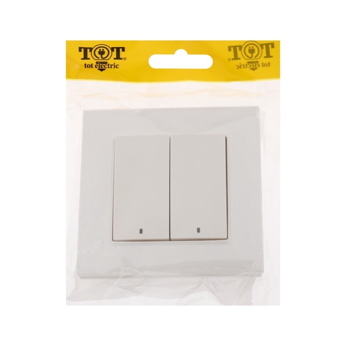 Выключатель TOT Glossy Glass, 10 А, 2 клавиши, с подсветкой, скрытый, стекло, белый