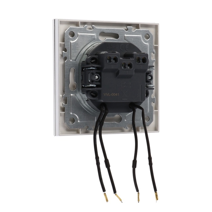 Выключатель TOT Glossy Glass, 10 А, 2 клавиши, с подсветкой, скрытый, стекло, серебристый