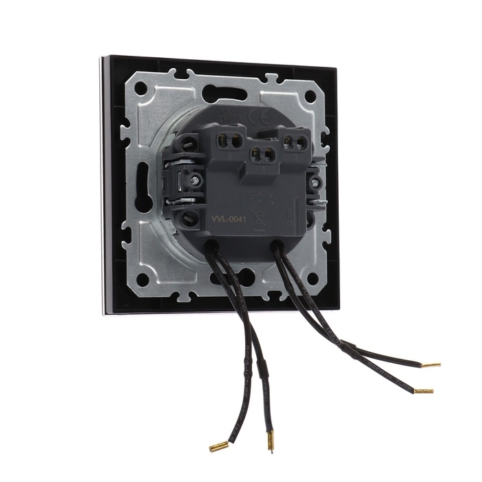 Выключатель TOT Glossy Glass, 10 А, 2 клавиши, с подсветкой, скрытый, стекло, черный