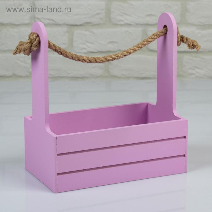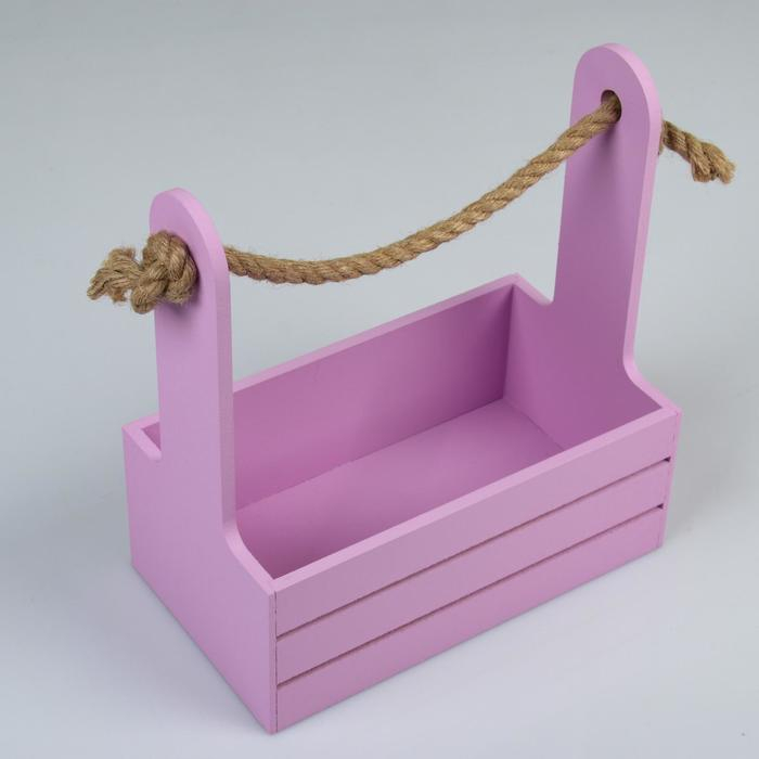 Набор кашпо деревянных 2 в 1 (25×15×30; 21×12×23 см) "Dear", ручка канат, сирень
