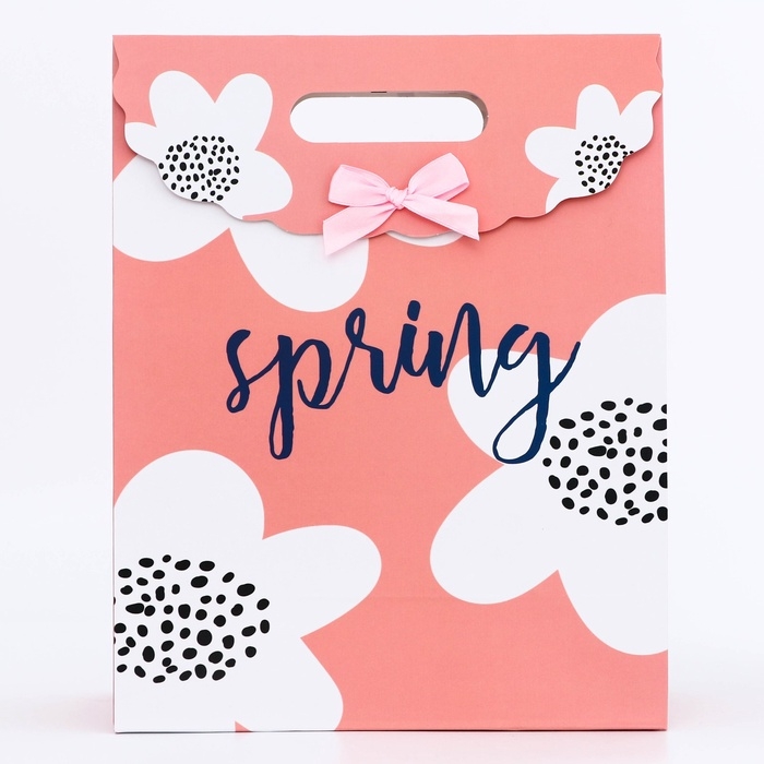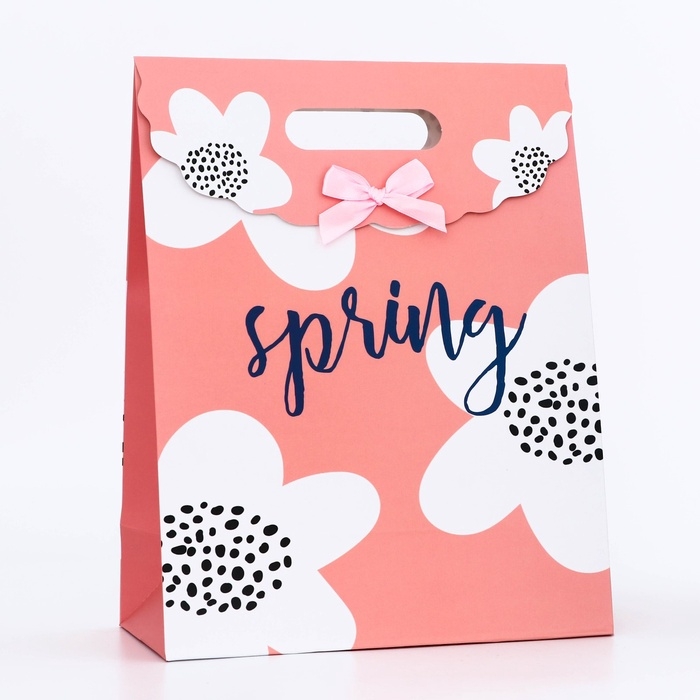 Подарочная коробка-пакет, упаковка с вырубной ручкой, "Весна" , 24 х 12 х 31 см