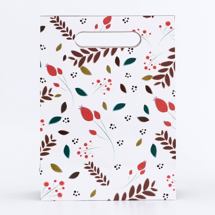 Подарочная коробка-пакет, упаковка с вырубной ручкой, "Весенняя композиция" , 19 х 9 х 27 см