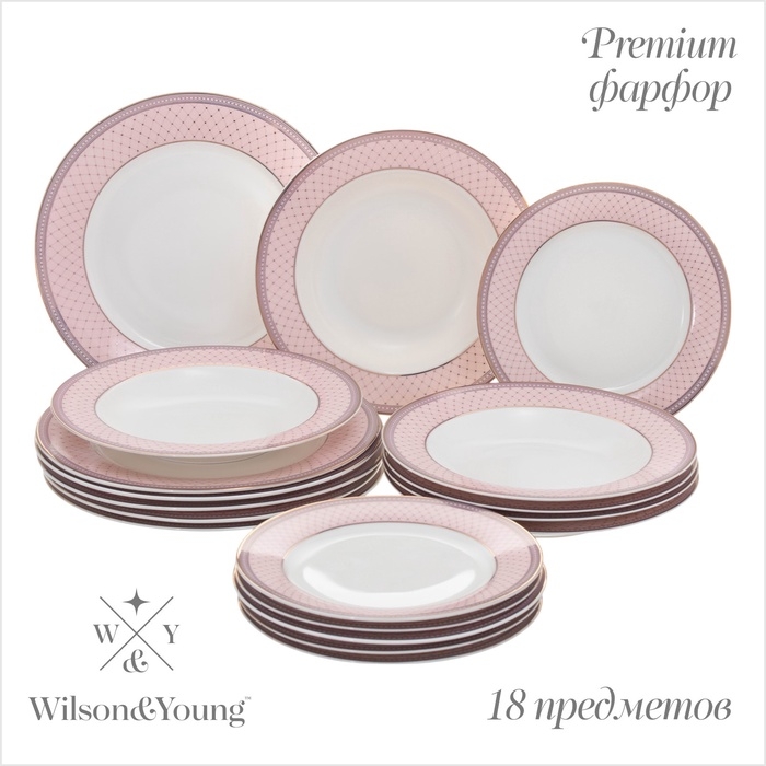 Набор посуды WY Paradaise, 18 предметов, 6 тарелок d=25,5 см, 6 тарелок d=20,5 см, 6 глубоких тарелок d=23 см, фарфор