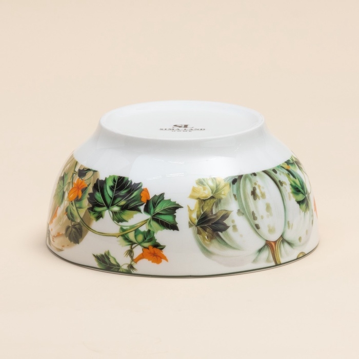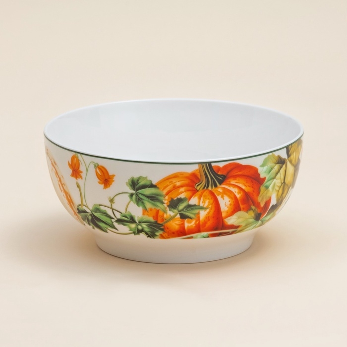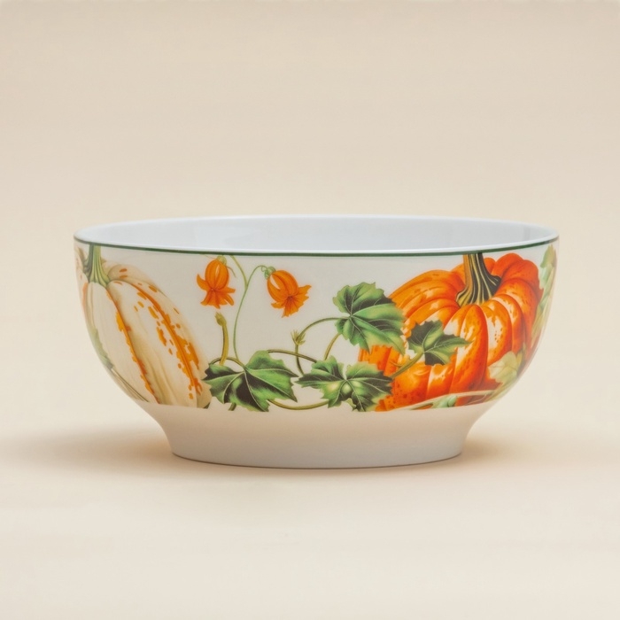 Изготовленный из качественного фарфора, этот салатник радует глаз чистым белым цветом и гладкой текстурой. Яркий рисунок с осенней тематикой создаёт атмосферу праздника, делая каждый прием пищи особенным.