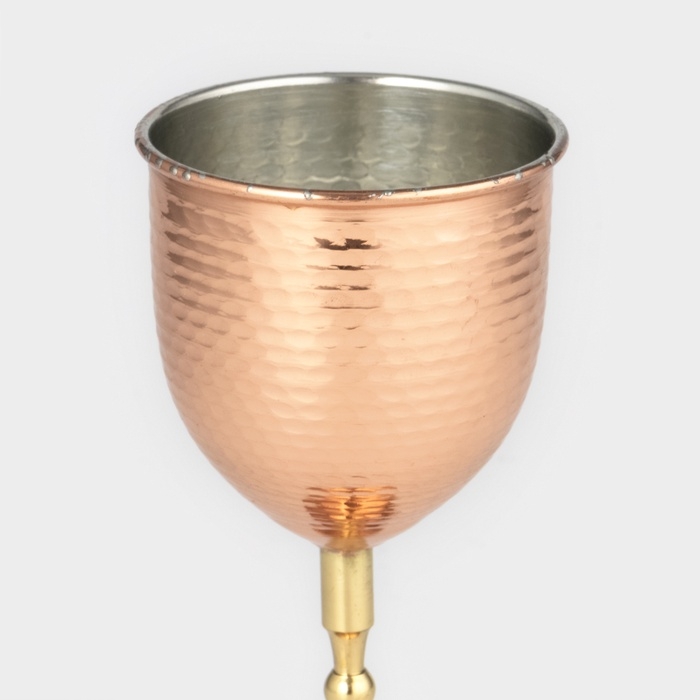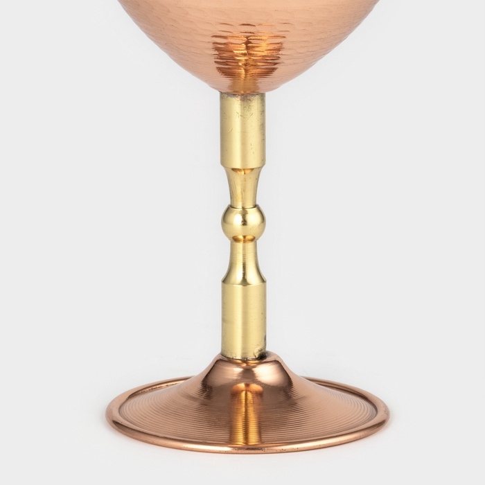 Бокал медный, 250 мл, d=7,5 см, h=15 см, чеканка, латунная ножка, 1 сорт