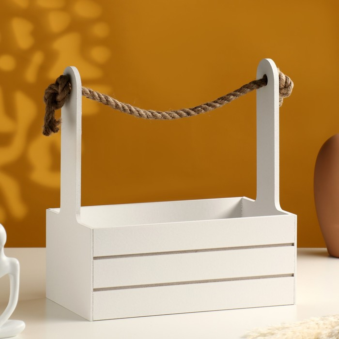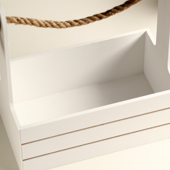 Кашпо деревянное 25.5×15×30 см "Аром", ручка канат, белое