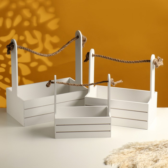 Набор кашпо деревянных 3 в 1 (29×18×33; 25×15×30; 21×12×23) "Аром", белый