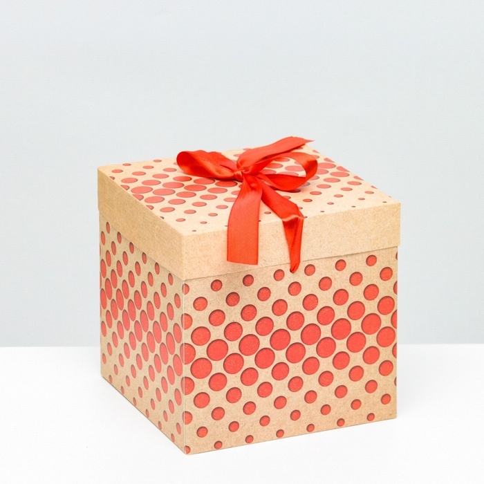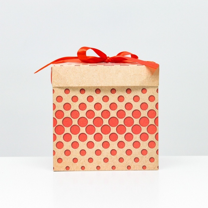 Коробка Самосборная "Горошек" крафт 15х15х15 см
