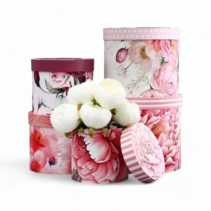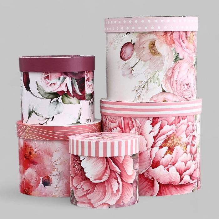 Не упустите возможность подарить радость своим близким — заказывайте набор шляпных коробок для цветов 5 в 1 и создавайте незабываемые моменты!