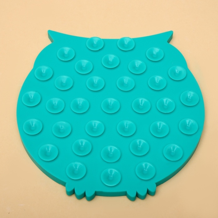 Присоски для надежной фиксации: Коврик оснащен прочными присосками, которые надежно фиксируют его на гладких поверхностях, таких как плитка, стекло или металл. Это обеспечивает устойчивость во время лизания и предотвращает скольжение коврика.
