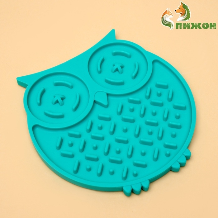Яркий цвет и форма: Зеленый цвет и форма в виде совы делает коврик визуально привлекательным для домашних животных, что побуждает их к игре и исследованию.