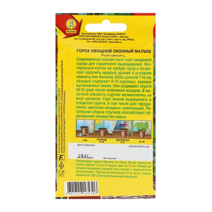 Семена Горох овощной "Оконный малыш", ц/п, 10 шт