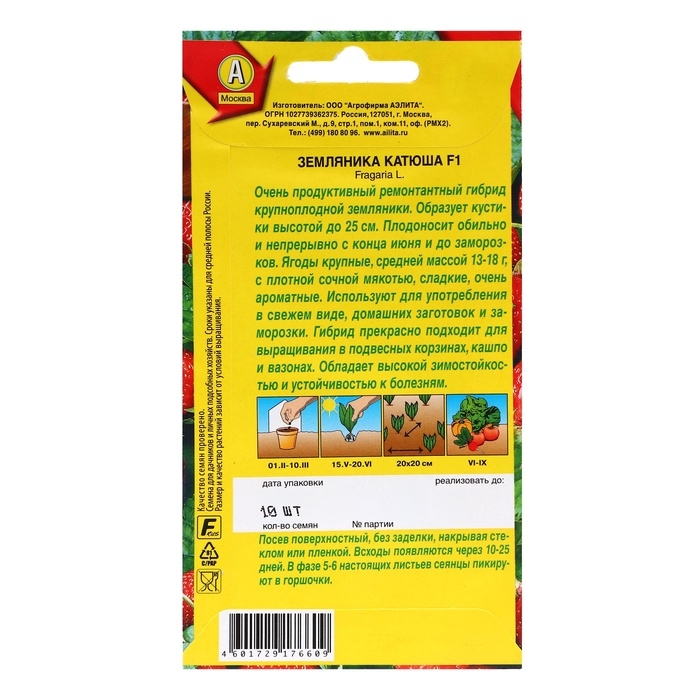 Семена Земляника "Катюша" F1, ц/п, 10 шт
